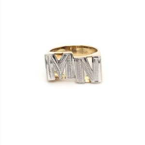 Mens Gold and White Gold Two Initial Ring Large Size Block Letter