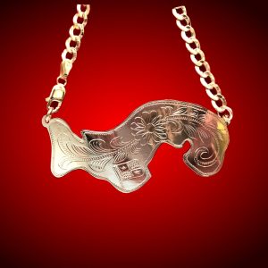 Includes the wavy font and design that just says made in Panama. Includes a beautiful link chain. Great for gifts. Can be worn everyday as well as on that special occasion.