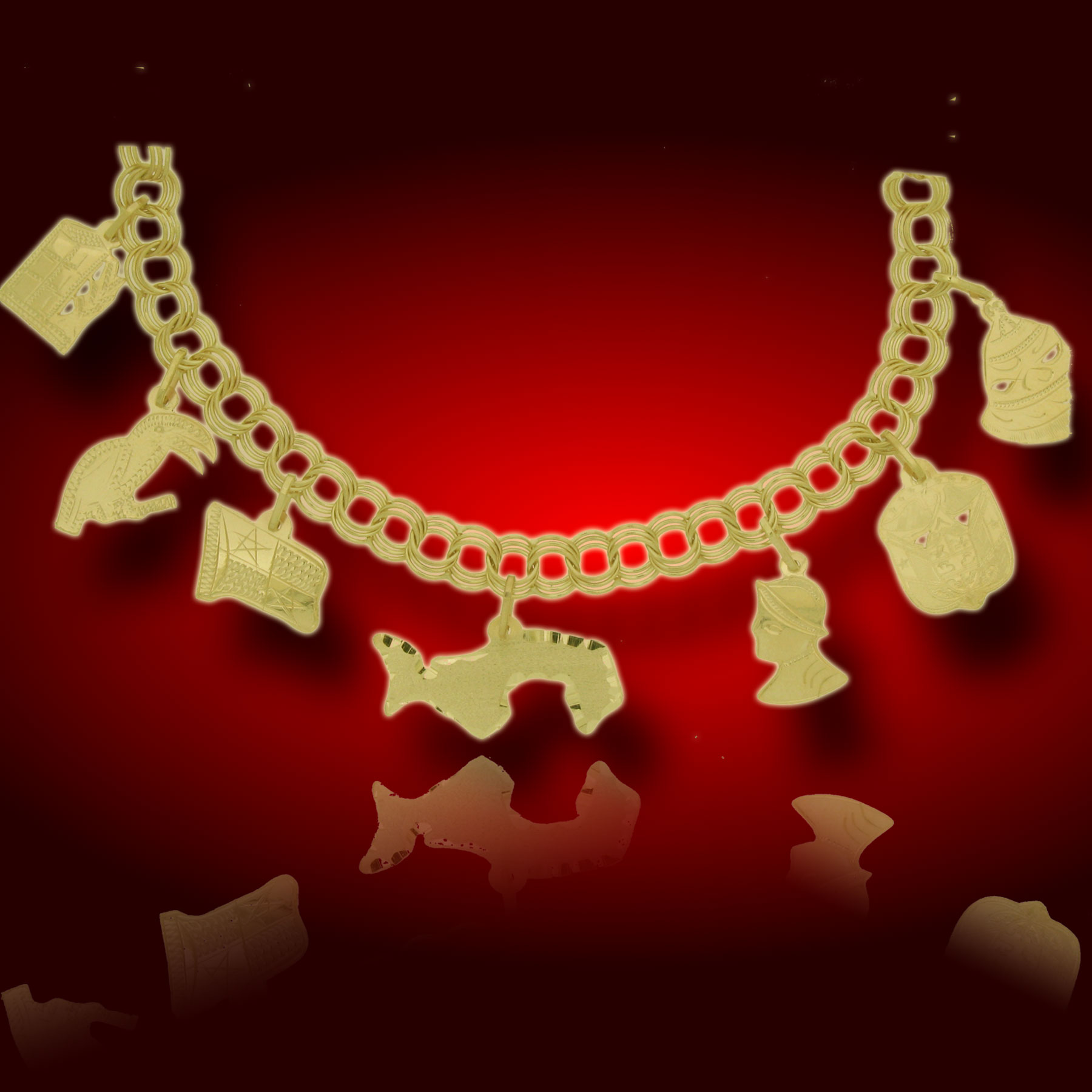 A beautiful hand crafted adults Panama charm bracelet. This bracelet is made in solid Panamanian gold. New Design of Showing your Panamanian pride on jewelry. Design directly from Panama, and a design that has been part of the Panamanian culture for decades.