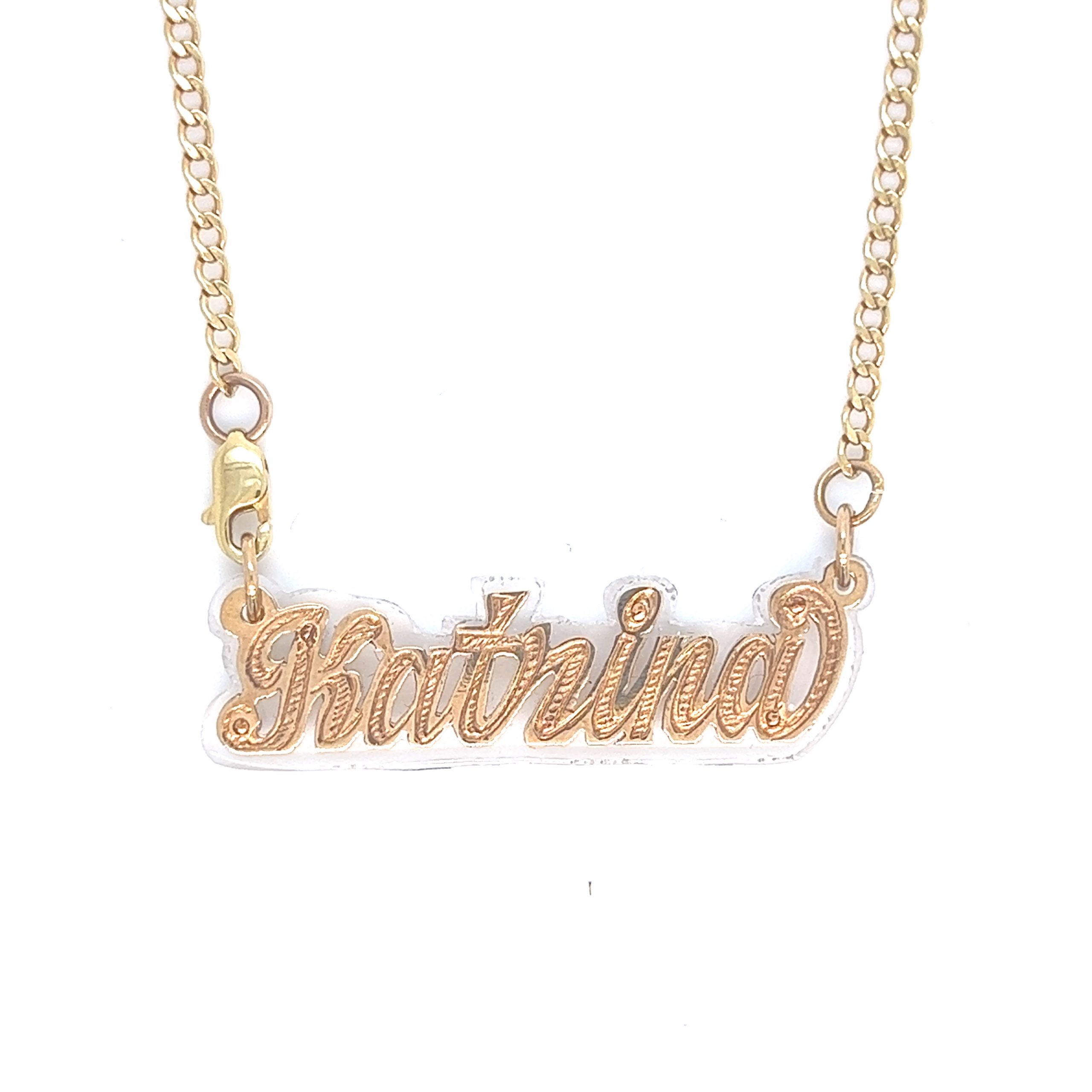 Own a one of a kind custom hand made nameplate necklace. This design can be made in your name or any name of your choice. Its completely hand made from scratch. The attention to detail really comes out as compared to a machine made one that looks bland and no design. This particular designs come in yellow with a high mirror polish throughout the piece to give it a beautiful luster and shine and features a diamond cut border design. This a more simple single plate design. buy a chain or attach your own. Available in 10k and 14k pure gold.? Please allow 7-10 business days for your handmade order to ship.