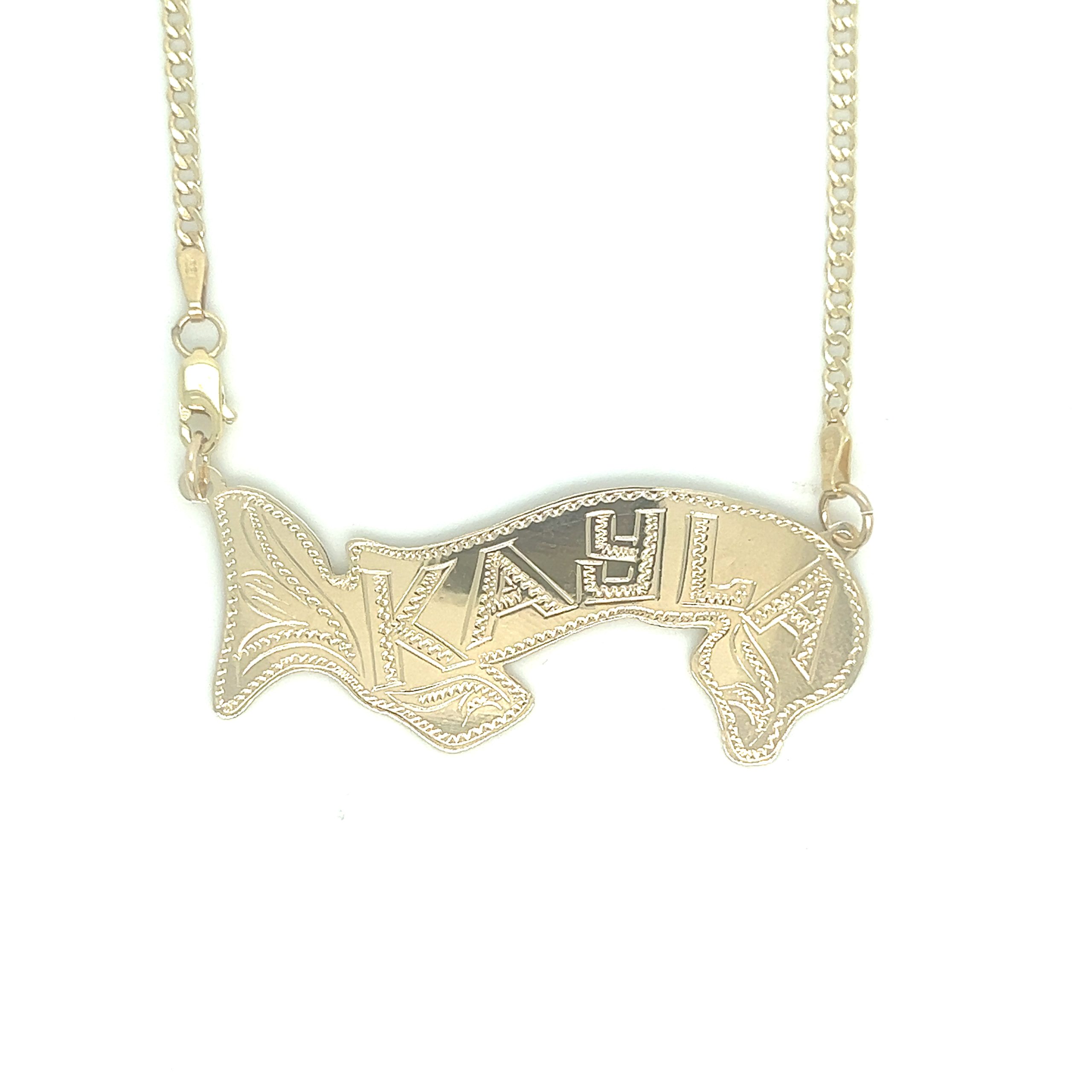 Own a one of a kind custom hand made nameplate necklace. This design can be made in your name or any name of your choice. Its completely hand made from scratch. The attention to detail really comes out as compared to a machine made one that looks bland and no design. This particular designs come in yellow gold? with hand carved Panama map shaped design with diamond cuts throughout the piece to give it a beautiful luster and shine while making the nameplate really stand out. You can also add CZ stones or Real Diamonds to the nameplate. with your choice of amount of diamonds. You can buy a chain or attach your own. Available in 10k and 14k pure gold.? Please allow 7-10 business days for your handmade order to ship.